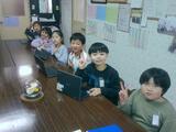5時間目。校長室に来たのは3-3です。今日は野火止小学校の「歴史」について調べたいというグループがインタビューにやってきました。なぜ、野火止小学校ができたのか?遊具はいつできたのか?築山は?とたくさんの質問がありましたが、開校当初の記録や10周年の記録、20周年の記録などを一緒に確認しながら遊具や学童が増えたり位置が変わったりする様子などについて調べていきます。「何人ぐらいだったんですか?」という質問に、10年ごとの記録を調べてみました。開校当初は452名。10年後の昭和56年は790名。「じゃあ、その10年後は増えてるかな?減っているかな?」と予想しながら調べ続けていました。
