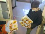 たんぽぽ学級は、家庭科室でピザづくりに挑戦!餃子の皮をピザ生地に見立てて、ソースや具材をのせていきます。ツナや玉ねぎ、チーズなどを自分で工夫して盛り付けていきます。自分のオリジナルピザが完成です!