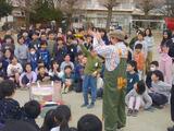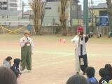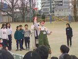 今年は途中で休憩時間も。ピエロに扮したボランティアさんが大道芸を披露してくれました。皿回しでは、児童の指にものせて回してくれたり。