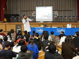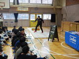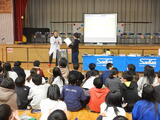 5・6時間目です。体育館では6年生の出前授業が行われています。本日は、新座市にある「サンケン電気」さんをお呼びして、半導体とはどのようなものかをお話いただきました。新座市の歴史とサンケン電気の関わりや半導体とは何か新座市教育委員会が作成した半導体テキストを活用しながら教えていただきました。半導体とは人でいう「筋肉」であり「頭脳」である。電化製品にとってなくてはならないもの。1つの電化製品に多くの半導体が使われており、1つでもないと動かなくなるものです。クイズを含めながらお話いただき、のびっ子たちも考えながらお話を聞きました。後半は、講師の先生が少年レスリングの指導もされていることから、キャリア教育として、ストレッチ等で体を動かしたり、お話を聞いたりしました。好きなこと是非続けてほしいと、エールをいただきました。