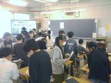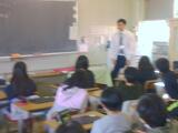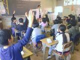 5時間目。6年生の3クラスでは、新座中学校の先生たちが来校され、出前授業が行われました。外国語、算数、理科の3教科を20分ずつ、1時間で2つの授業についての出前授業が行われました。何のアニメ(または他のもの)が一番好きなのかと質問し合う外国語の授業は、実は中学校2年生の学習内容だったり。数学では、はじめに思い描いた数字を、計算していく中で最後には先生があてるという学習内容の裏には仕掛けがあるのではないかと見破ろうとする児童がいたり。理科では新聞紙の下に入れた板のはみ出した部分を机の横に出し、木づちで思い切り叩くとどうなるのかを予想し、実験したり。児童と楽しく関わりながら、学習を進めていただきました。新座中学校の皆さん、有り難うございました!