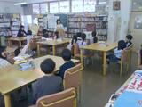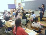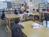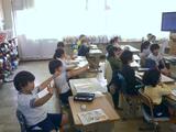 3時間目。2-2は音楽です。今月の歌「絆」を歌っています。強弱に気をつけながら、先生の指揮に合わせて一緒に体を動かして歌っています。4-2は図工です。タブレットを持って校内をうろうろ。隙間を見つけてアップにしたり、教科書やノートを組み合わせたり、壁に近づいてでこぼこを撮ってみたり。同じものでも見る角度や近さによって見え方が全然違います。1-3は図書の時間です。これから読み聞かせを始めてくださいます。心と体をしっかり向けて集中できるように声をかけています。