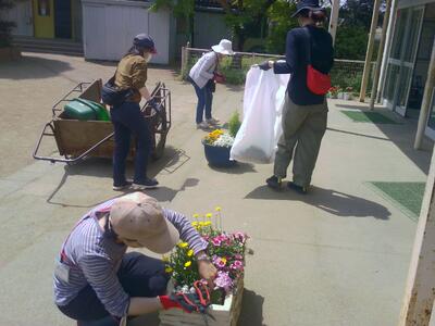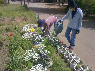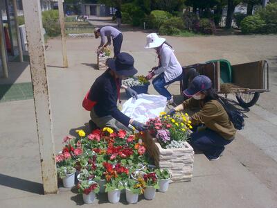 暖かい春の日差しの中、花植えボランティアさんの活動が行われました。